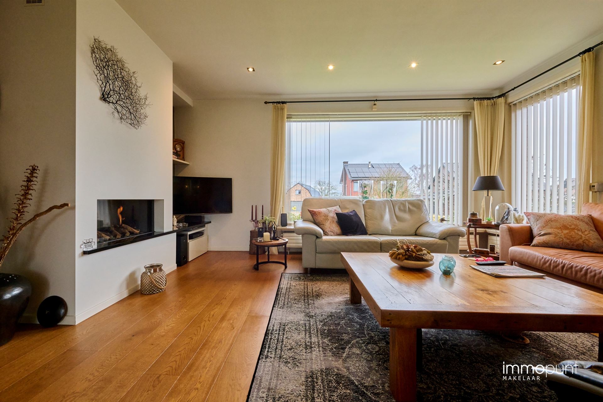 Indeling: Vanuit de inkomhal kom je via een glazen deur in de woonkamer. De gezellige woonkamer beschikt over parketvloer, een gashaard en inbouwspots. Door de grote raampartijen is er veel natuurlijk daglicht in de woonkamer. Grenzend aan de woonkamer is er een moderne keuken met een granieten werkblad, spoelbak, afwasmachine, kookplaat, dampkap, oven en magnetron. Achterinkom met gastentoilet. Het huis omvat drie royale slaapkamers met een oppervlakte tussen 11 en 15m². Er is één badkamer voorzien van een dubbel lavabomeubel, ligbad, douche en toilet.