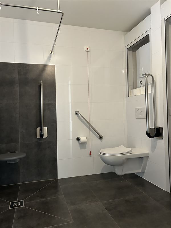 Het appartement is volledig aangepast zodat senioren comfortabel en veilig kunnen wonen (rolstoel toegankelijk, schuifdeuren, inloopdouche, oproepsysteem)