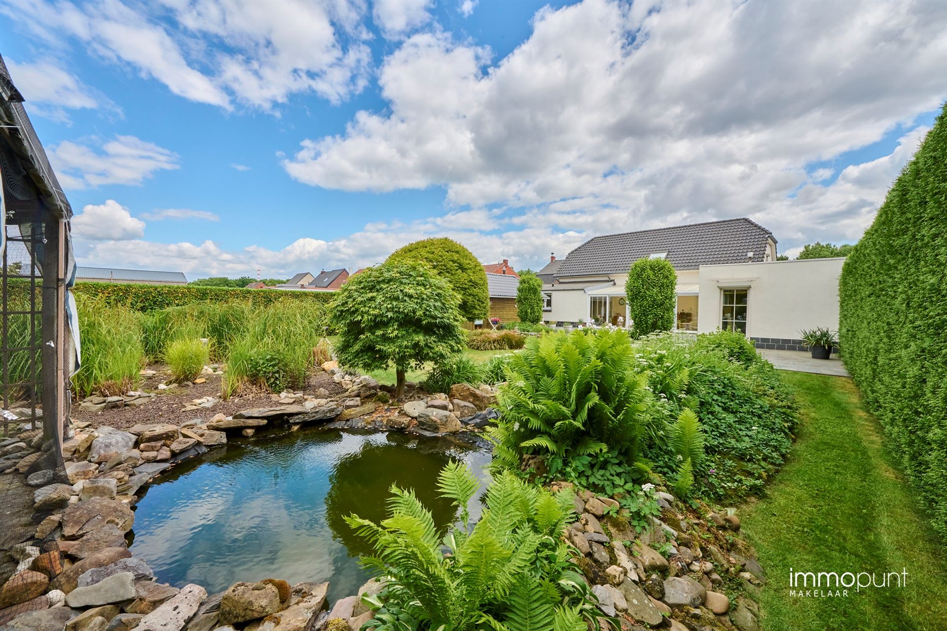 Buiten geniet je van een prachtig aangelegde en volledig omheinde tuin met royaal terras, vijver, veel privacy én een extra bijgebouw met een overdekt terras.