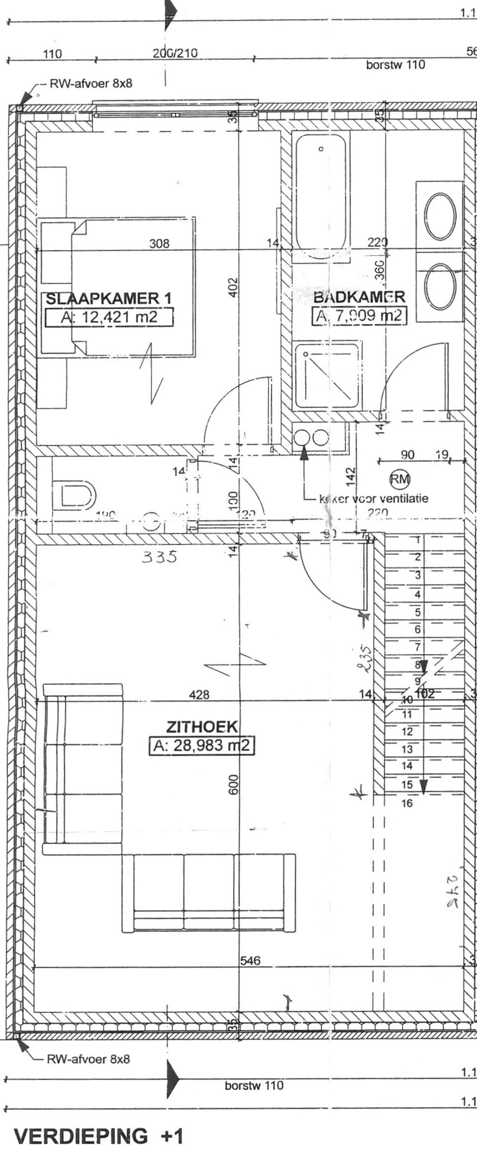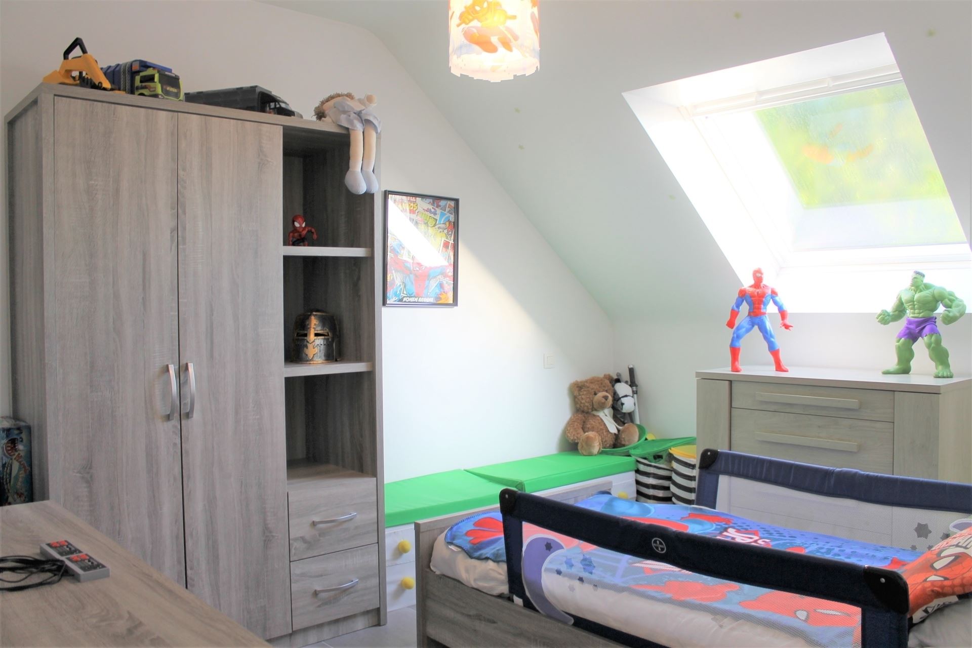 Op de eerste verdieping is er een gezellige zithoek, slaapkamer (12m²), toilet en een moderne badkamer met inloopdouche en lavabomeubel. Op de tweede verdieping zijn er twee slaapkamers van respectievelijk 11m² en 14m² en een (technische) bergruimte.