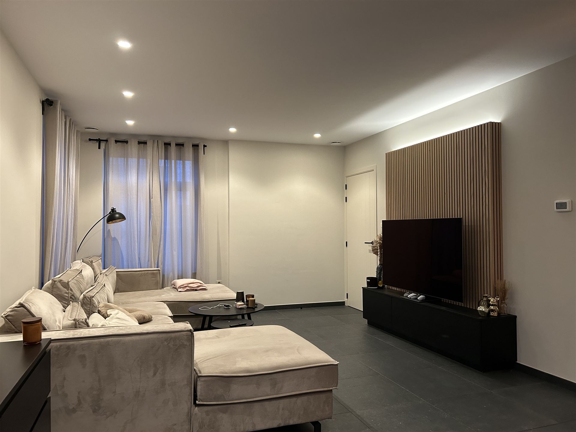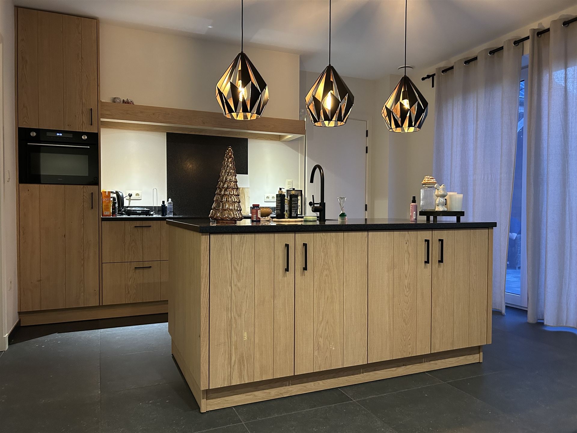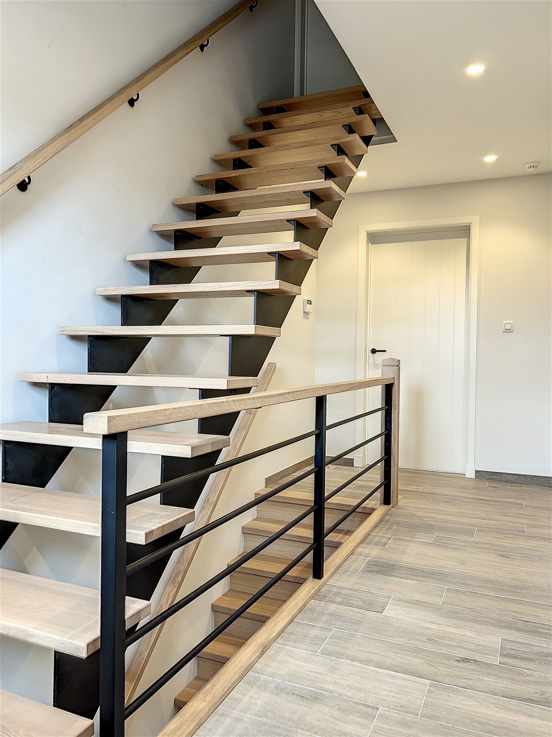 Gelijkvloers: inkomhal met vestiaire, gezellige leefruimte bestaande uit zithoek met TV meubel met houten wand en een open keuken. De keuken is voorzien van een granieten werkblad, spoelbak, koelkast, combi-oven, kookplaat, dampkap en afwasmachine. Aanpalend aan de keuken is er een praktische berging. Achterinkom met vestiaire en gastentoilet. Ruime wasplaats volledig voorzien van inbouwkasten en een spoelbak.