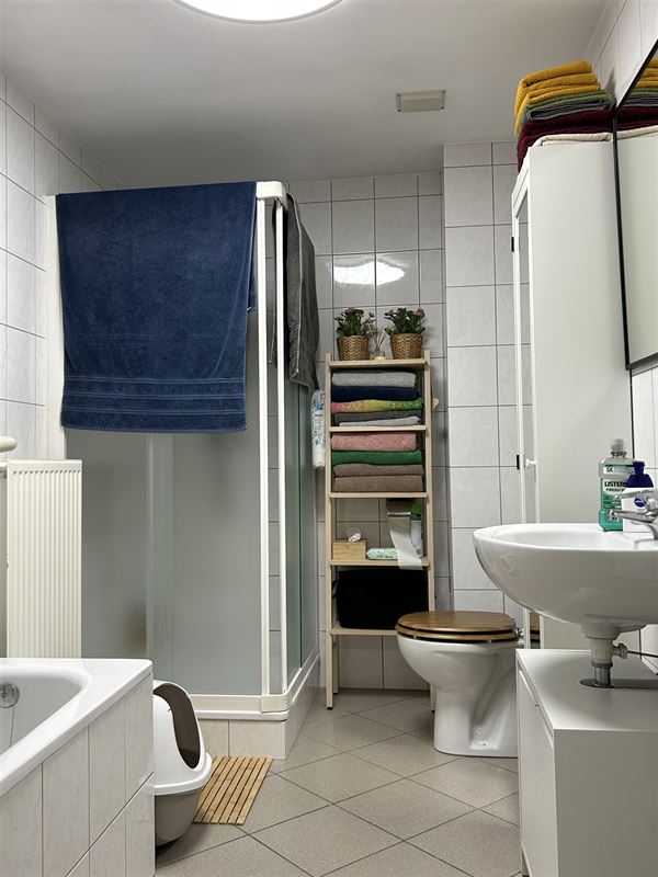 Indeling appartement: gezellige zithoek, ruime eetkamer, volledig geïnstalleerde open keuken met kookplaat, dampkap, koelkast, oven en dubbele spoelbak. Afzonderlijk toilet, Wasplaats. Vanuit de zithoek is er toegang naar een zonnig, zuidgericht terras. Op de verdieping zijn er 2 slaapkamers van 18m² en 15m². Badkamer met lavabo, ligbad, douche en toilet.